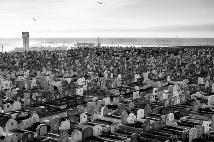 J’étais en déplacement à Rabat et Salé la semaine dernière. Pas énormément de temps libre mais en fin de journée, en quittant la médina de Salé, j’ai vu un homme sur les remparts qui sépare le cimetière des habitations de la vieille ville. Je l’ai imité en regardant par où il descendait et je ne fus pas déçu de la vue ! Une précision : les petits points plus clairs au sommet de chaque tombe, ce sont… des mouettes ! Une par tombe… (plus de photos dans la suite du post)