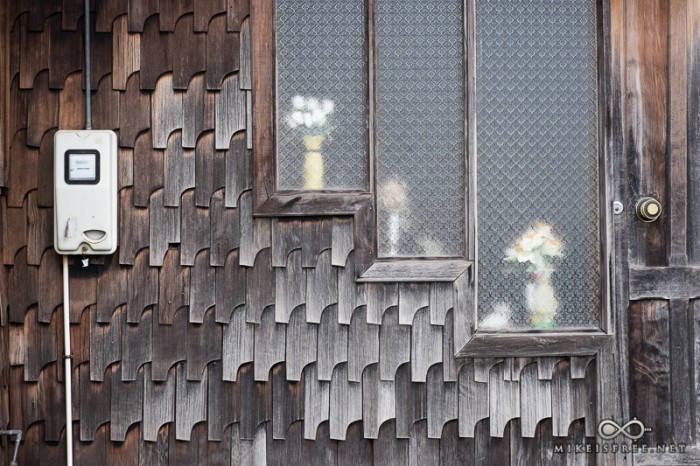 Il y a plusieurs choses omniprésentes sur l’île de Chiloë, en voici quelques unes au hasard (presque) : a) le saumon qu’on trouve en abondance pour un prix dérisoire b) la pluie c) les maisons tout en bardeaux. Ces bardeaux peuvent être de toutes formes et couleurs, chaque habitant essayant visiblement d’avoir une maison bien différente de son voisin. Toutes ces textures et ces couleurs, ça m’a beaucoup parlé ! J’ai donc en stock toute une série de photos dans le style de celle-ci; je publierai celles que je préfère mais je vous épargne « la totale » ;).