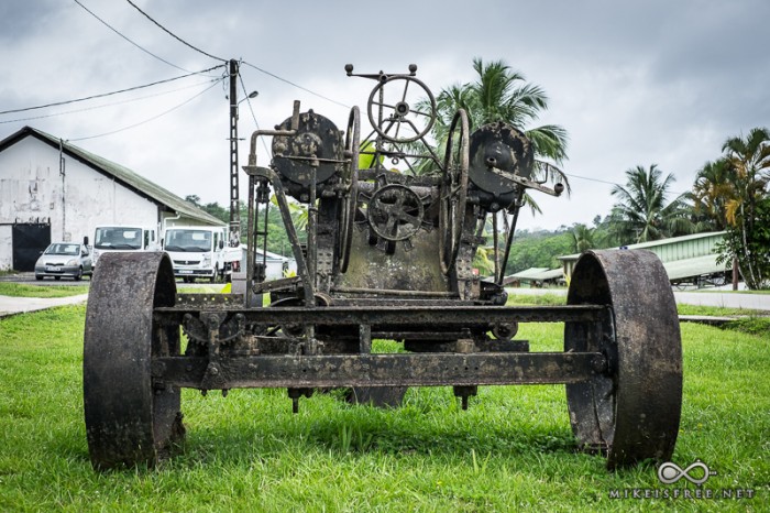 Cette niveleuse « SARM / Rhonelle » est un vestige de l’époque du bagne, lorsque Saint-Jean du Maroni hébergeait le camp de la relégation. Ce camp accueillait les bagnards récidivistes pour purger une peine… à vie. Corollaire : le cimetière est bien rempli.