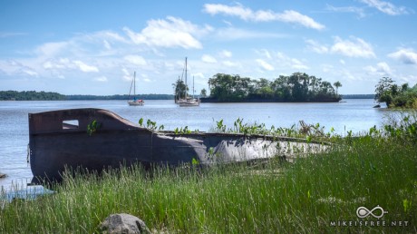 Les berges du quartier historique de Saint-Laurent du Maroni cachent de nombreuses épaves de bateaux datant de l’époque du bagne. La plus remarquable est « l’Edith Cavell », inratable depuis l’office de tourisme.
